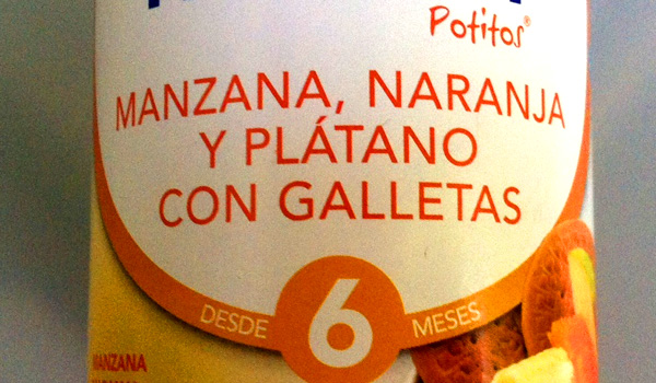 No cuesta mucho deducir la estrategia del fabricante de potitos: es cierto que incluye galleta, aunque sólo sea una ínfima parte, y por tanto pueden anunciar abiertamente que el potito lleva galleta, al igual que plátano y naranja, pero la cantidad de estos componentes es inversamente proporcional a su coste. Si vas al mercado, lo más barato son las manzanas, seguido de las naranjas, los plátanos y las galletas.