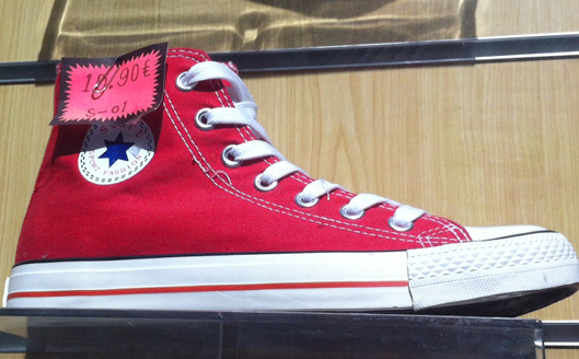 Decido pasar por una tercera tienda, donde quizás pueda obtener más información sobre las zapatillas rojas que me gustan. Pero cuál es mi sorpresa cuando veo el nuevo precio: 65€. En este caso no me ofrecen ningún adorno extra y son sospechosamente parecidas a las primeras. La diferencia es la marca, pero el resto es muy similar. ¿Realmente la marca justifica un incremento de precio de un 500%? Por supuesto que si, porque cada bolsillo debe elegir el precio que está dispuesto a pagar.