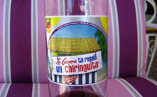 Pero lo más curioso de todo es la promoción que incluía la botella: «La Casera te regala un chiringuito«. En concreto y cito textualmente: «La Casera sortea el traspaso y alquiler de un Chiringuito durante el año 2013«. Parece una broma pero no lo es.