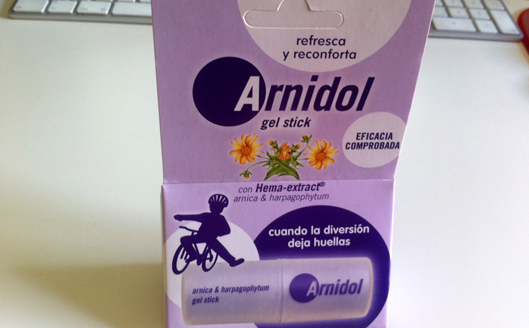 Arnidol es un stick en gel compuesto de árnica y harpagofito muy habitual entre los padres de niños pequeños (me incluyo!). Cuando tu niño se da un trastazo jugando, Arnidol evita la formación de moratones y le calma el dolor. Su claim no puede ser más imaginativo: «Arnidol: cuando la diversión deja huellas». ¡Es genial!