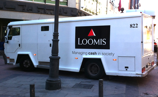 Loomis es una empresa multinacional americana con más de 150 años de historia especializada en transportes de seguridad de dinero en efectivo. Operan en 11 países europeos incluyendo España. Es habitual ver sus furgones transportando dinero por cualquier gran ciudad. Su claim es un nuevo ejemplo de acierto: «Managing cash in society» (gestionando dinero en sociedad). Esa coletilla de «in society» me parece diferencial.