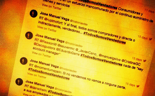 Desde principios de año he estado monitorizando en Twitter varios términos relacionados con ventas y los he retuiteado en mi perfil (@historiasdev) bajo el hashtag #TodosSomosVendedores. Recopilo en este post los 25 tweets sobre ventas que más me han gustado sin ningún orden en particular. Algunos son realmente inspiradores.