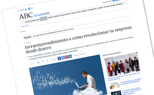 El pasado domingo se publicó una artículo en la sección de Economía de ABC titulado “Intraemprendimiento o cómo revolucionar tu empresa desde dentro”, en el que se recogen algunos de mis comentarios y opiniones.